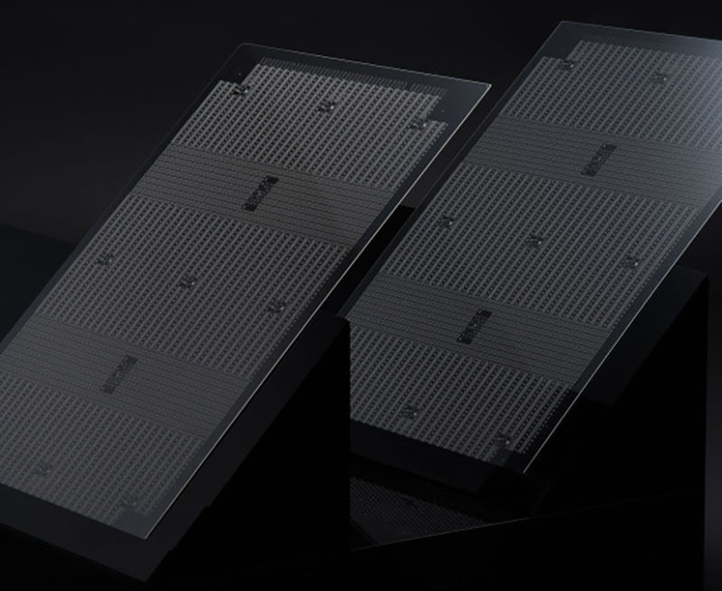 薄板ガラス基板にお客様のご要望のパターンで、微細孔形成を実施します。半導体パッケージの3D実装用回路基板、その他幅広い分野での使用が可能。