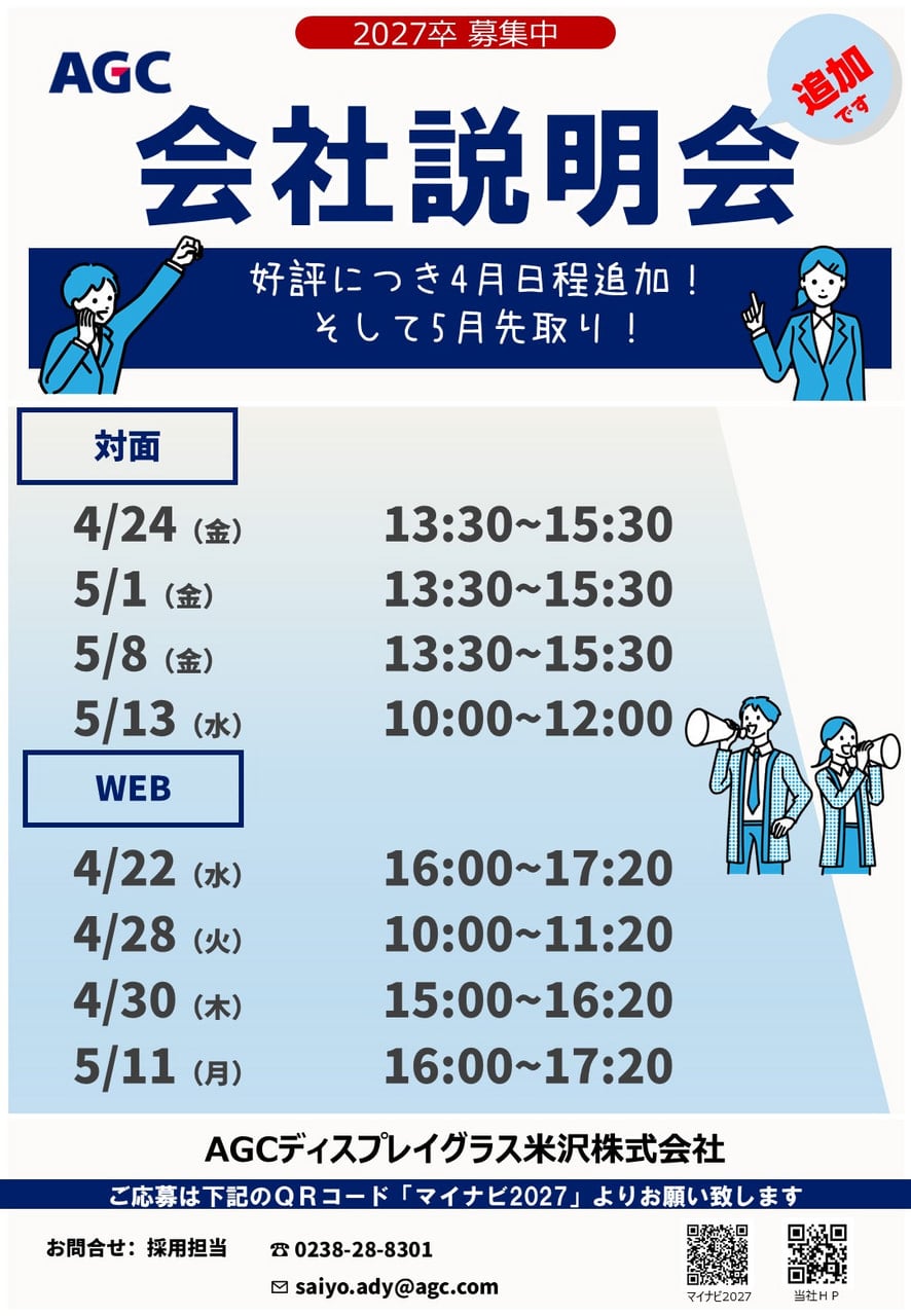 【好評につき日程追加!】2026年4月+5月の会社説明会日程【5月も先取り!】